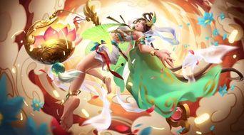 首先是她的招牌技能——回城。大乔的回城动画设计得非常巧妙,她乘坐一叶扁舟,穿越波光粼粼的湖面,最终回到基地。这个动画不仅美轮美奂,还充满了诗意。